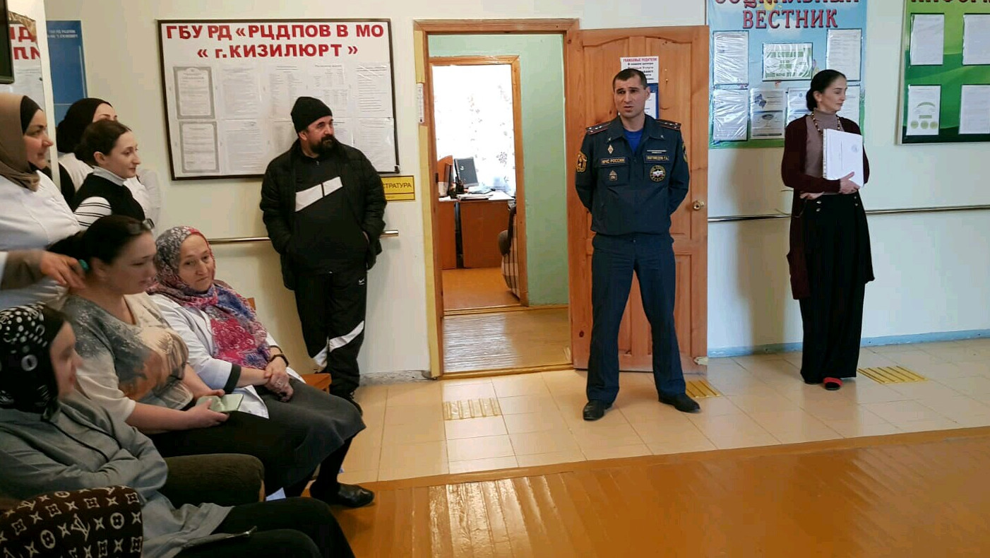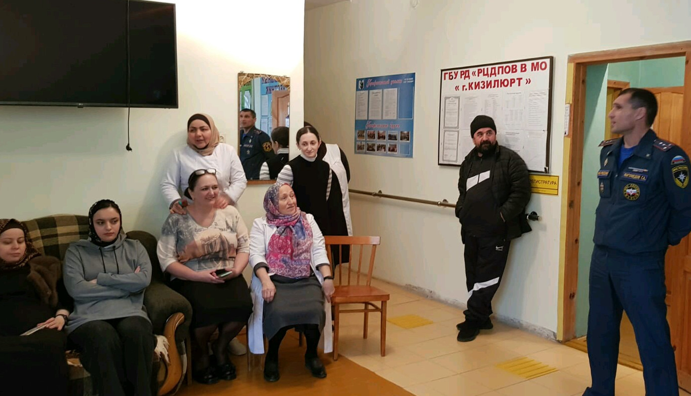 Во исполнение требований Правил противопожарного режима в РФ (ППР), с целью отработки навыков и действий при ЧС в учреждении было проведено занятие, с участием инспектора МЧС России по РД ОНД и ПР № по г. Кизилюрт, Кизилюртовскому району.