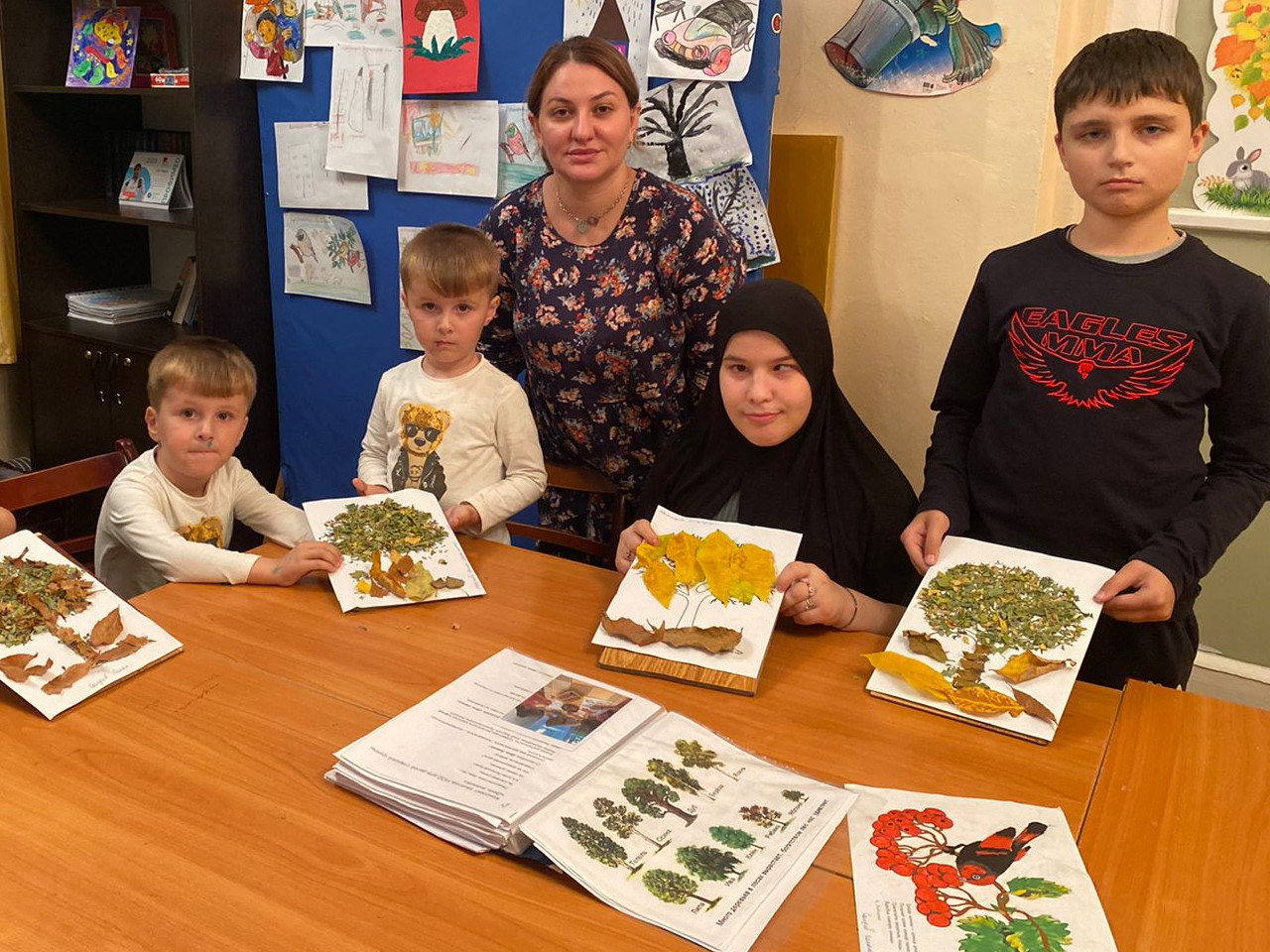 Воспитатели стационарного пребывания Тагирова Калимат и Герейханова Асият в течение недели проводили занятия на осеннюю тематику. Территория наше учреждения осенью наполняется многообразием красок. Воспитатели решили запечатлеть это время ни только в памяти, но и на бумаге. Дети собрали подручный, природный материал.