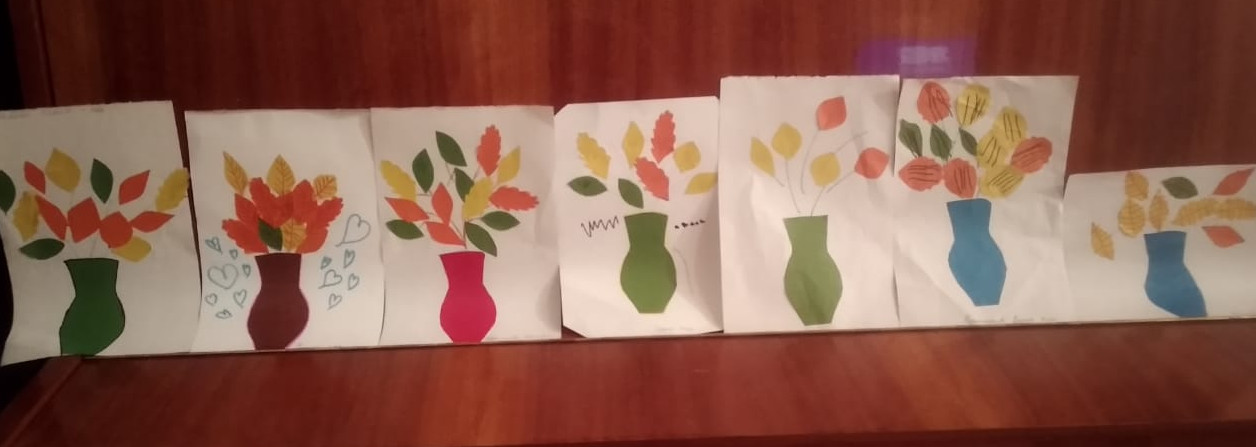 Осень это сказочно красивая пора. Дети с большим интересом вырезали красные, желтые , зеленые листочки и обклеили свои картинки. Занятие направлено на развитие мышления, воображения и развитие мелкой моторики рук. Картинки детей получились яркими и красочными. Дети были довольны своим результатам. Серые будни украсились положительными эмоциями от этих картин.