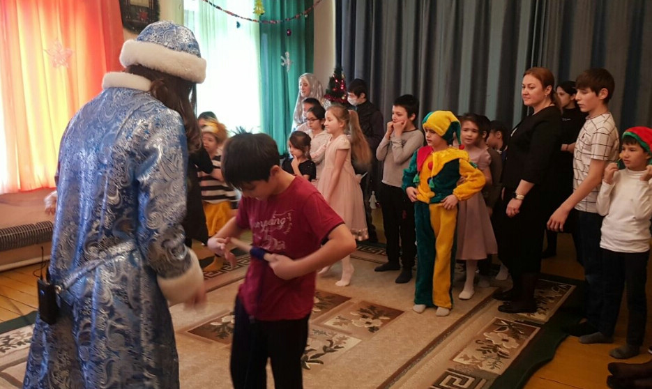 Атмосфера была сказочной. И ее оживили аниматоры в костюмах Деда мороза и Снегурочки. Они провели конкурсы, пели и танцевали с детьми. Перед раздачей долгожданных новогодних подарков Дед Мороз подарил детям снег в виде серебряной мишуры. Зав ОСМР, Далгатова А. М. поблагодарила всех спонсоров, которые помогли нашим детям очутится в сказке. (спортсмен КFL Абдулаев Х.М., аниматоров с Отдела культуры, туризма и молодежной политики администрации городского округа «город Кизилюрт» и инструктор ЛФК Гимбатова П.Ш.)
