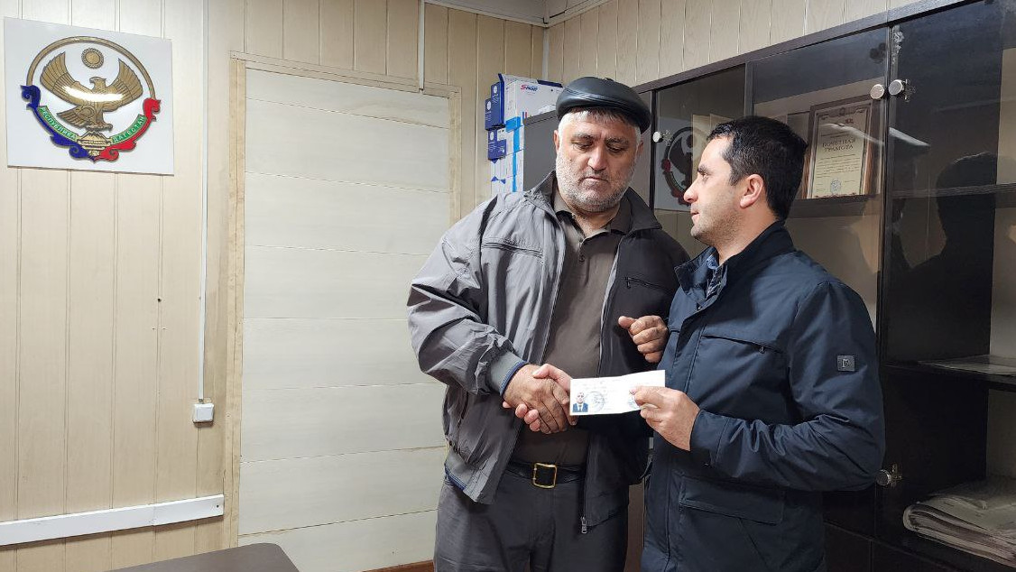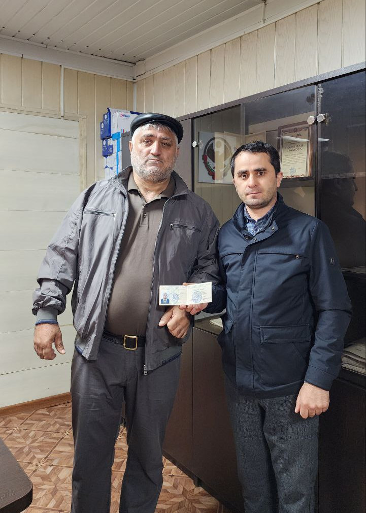 Руководитель ГКУ РД "УСЗН в МО Бежтинский участок" Халилов Р.М, вручил Удостоверение "Ветерана труда" Габовахову Р.Г. в торжественной обстановке .