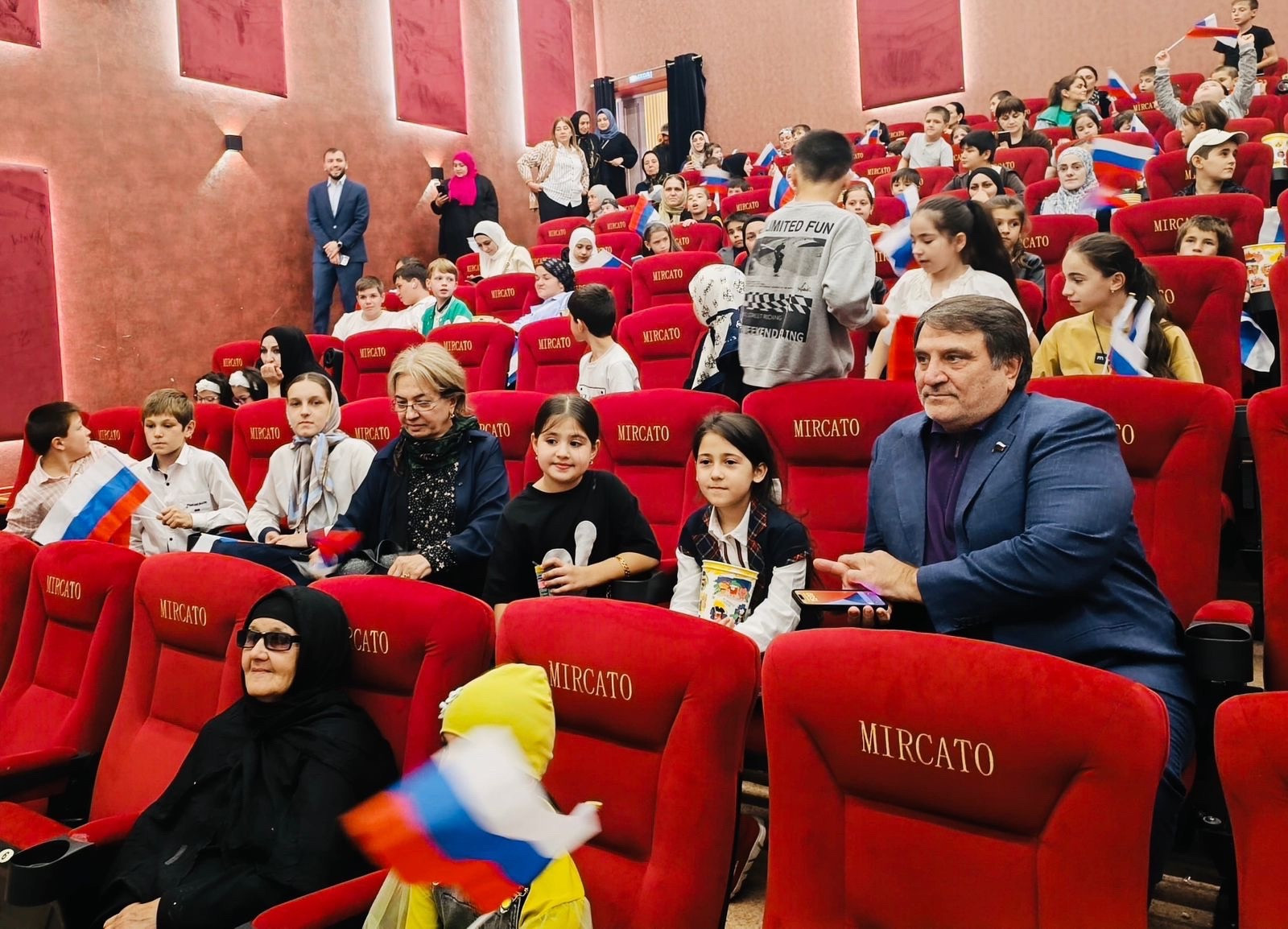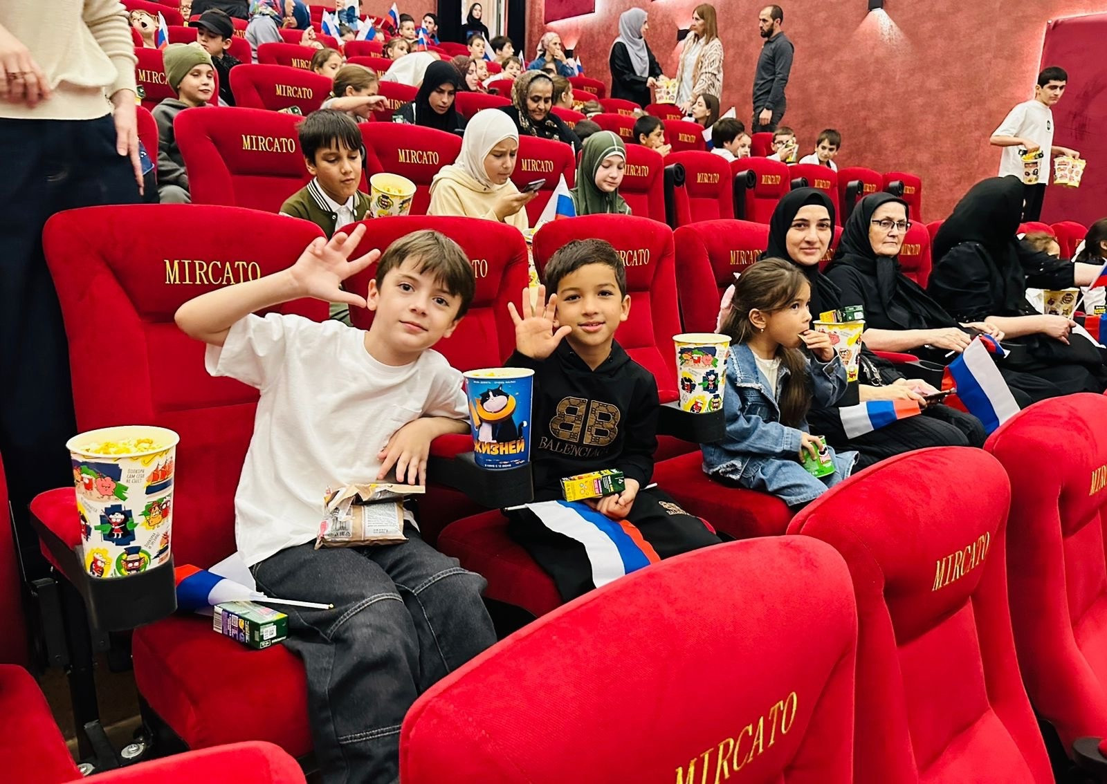 В кинотеатре «Миркато» был организован благотворительный показ мультфильма, игры и фото с аниматорами, а также угощения - сладкий попкорн и напитки. Сайгидпаша Дарбишевич поприветствовал всех детей и поговорил с ними после показа мультфильма.