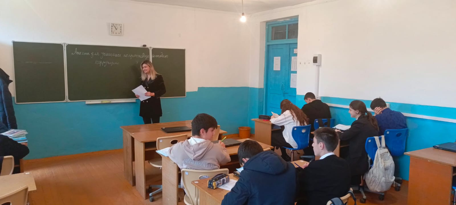 Правовое просвещение и повышение антикоррупционной компетентности учащихся в Маджалисской СОШ имени Темирханова и Баршамайской СОШ имени А. Р. Качмасова с применением анкеты «Твое мнение о коррупции» провели специалисты Центра социального обслуживания населения Кайтагского района.