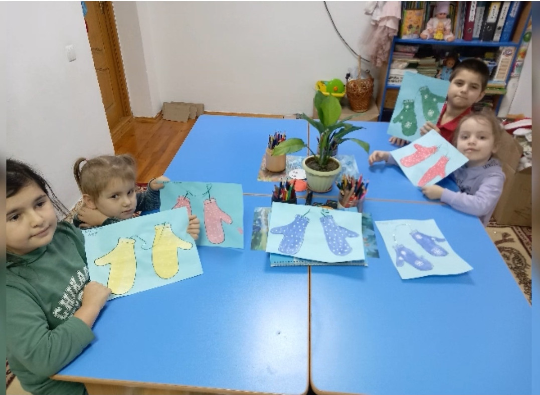 Воспитатель Муртазалиева Л.О. в рамках кружка " Почемучка" провела занятие, на котором изготавливали аппликации "Рукавички".