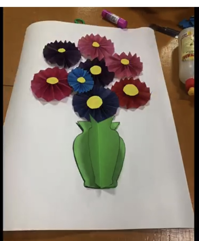 Воспитатель Балилова М.И. провела занятие по изготовлению объёмной аппликации: «Ваза с цветами для мамы».
