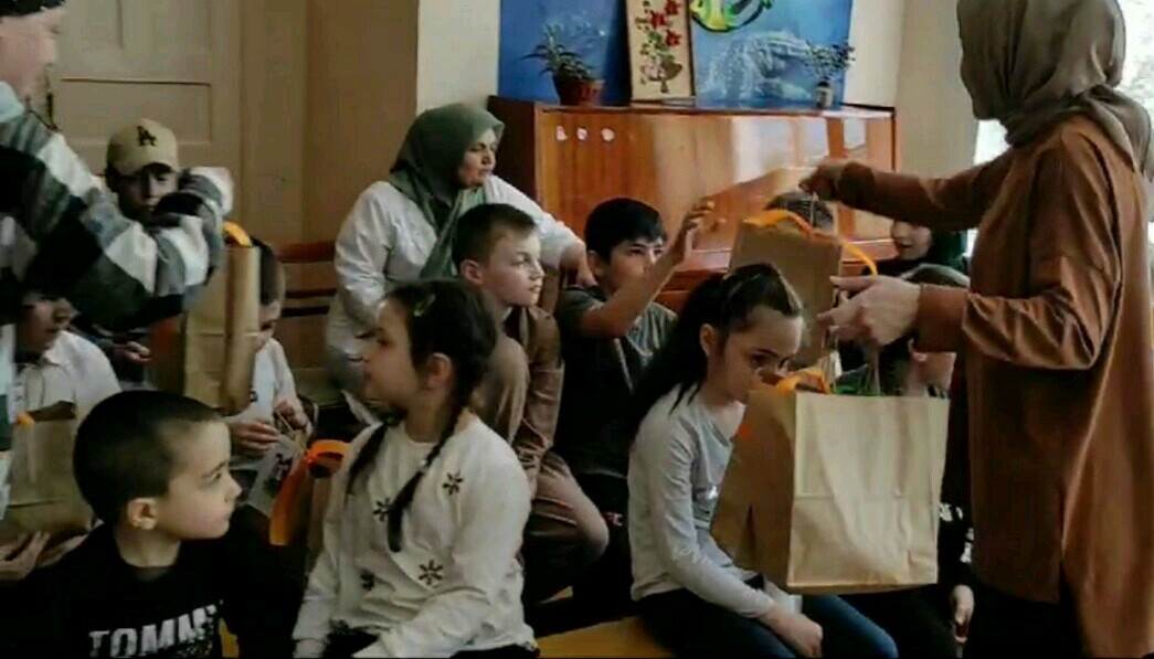 Реабилитационный центр для детей и подростков с ограниченными возможностями посетили гости из детского сада «Светлячок». Это благотворительное мероприятие было приурочено к прошедшему празднованию «Ураза Байрам». Гостей встречала Кураева Месед (специалист Центра). Детей поздравили и вручили им пакеты со сладостями. Чувство праздника длилось еще целую неделю. Дети с удовольствием делились сладостями с другими и показывали всем какие им понравились больше всего.