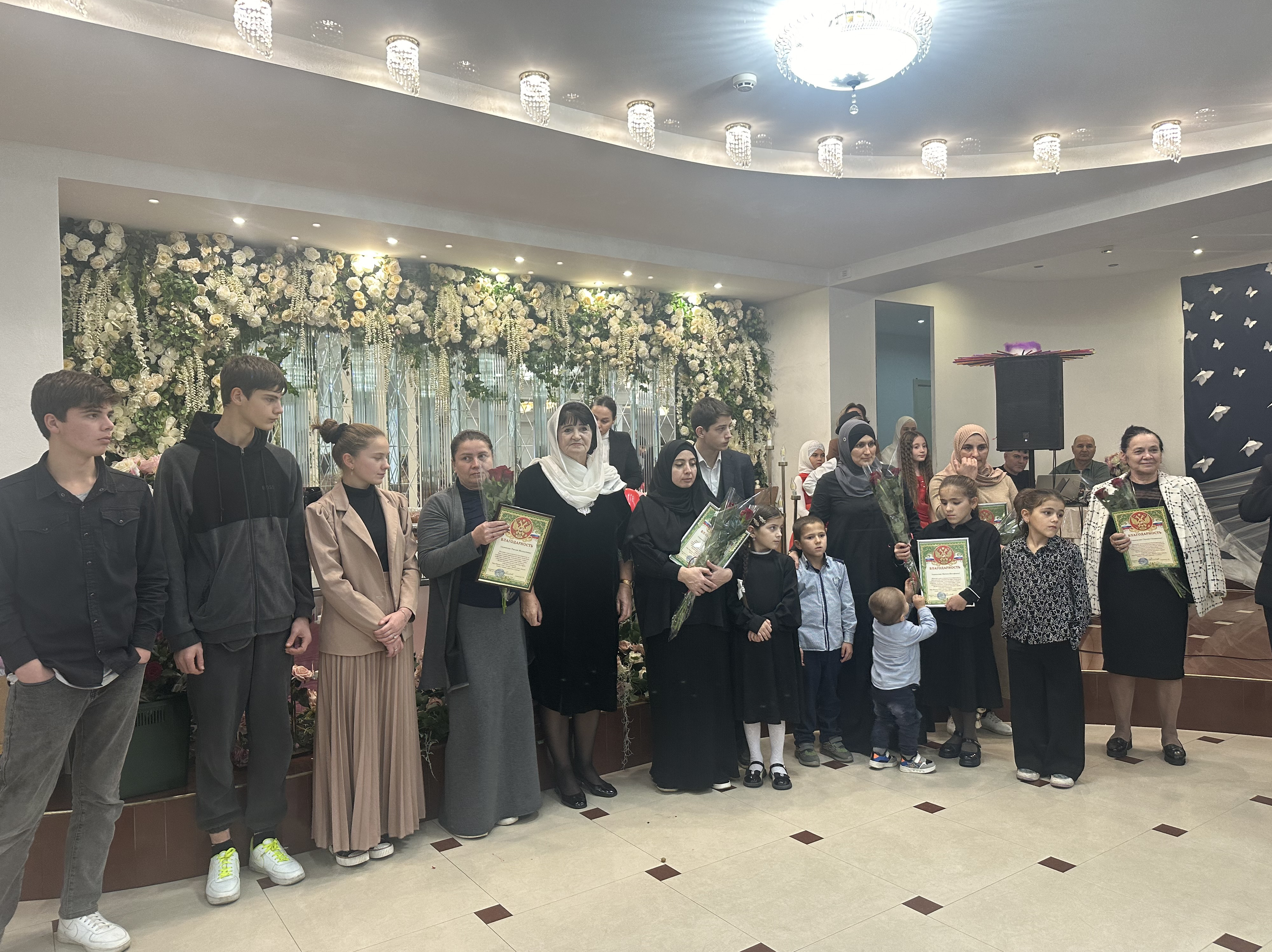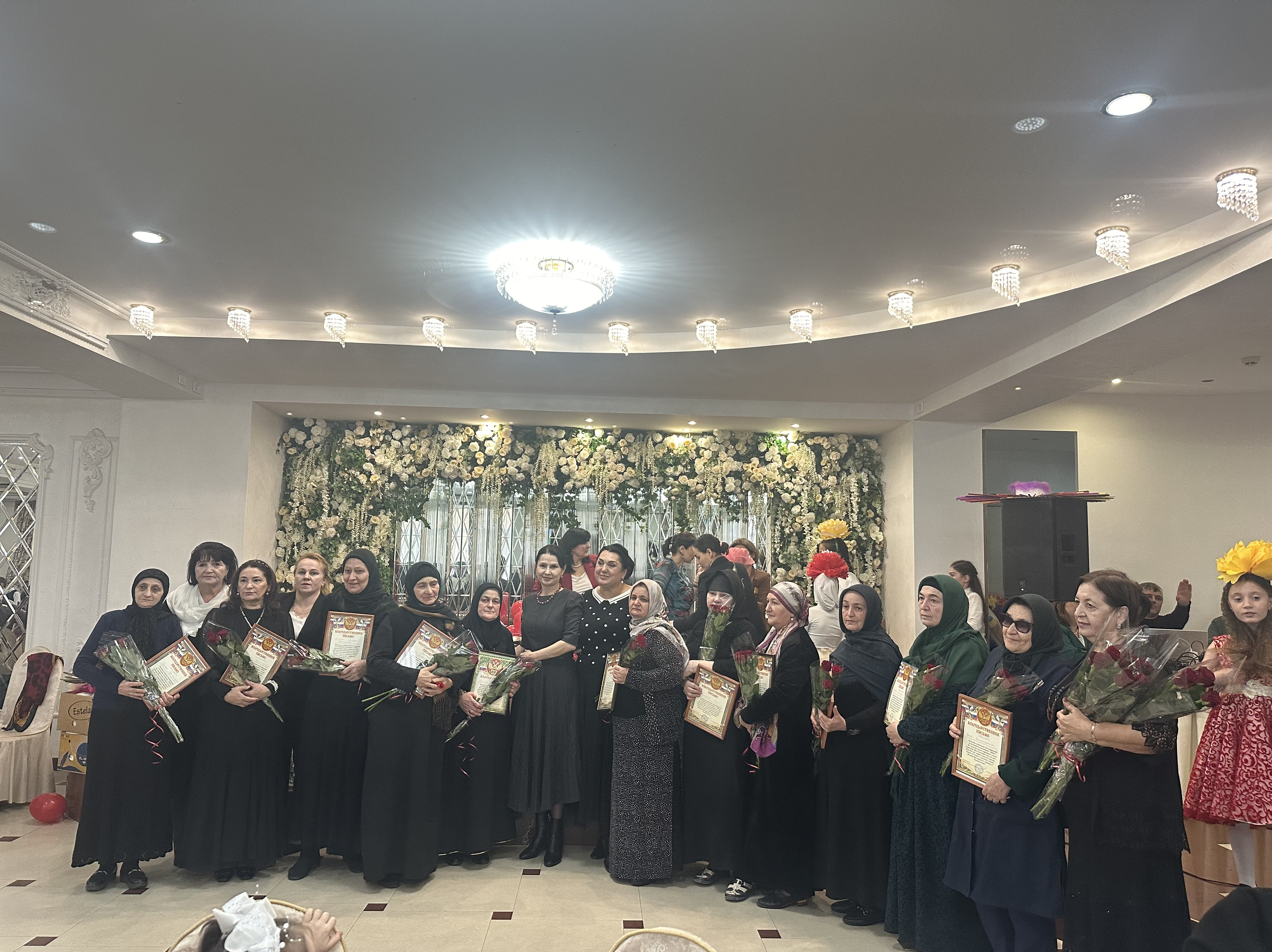 ? Матери и жены военнослужащих, меценаты, многодетные мамы получили благодарственные письма и цветы,которые вручали: зам.начальника Комитета по национальной политике, вопросам общественных и религиозных объединений и межпарламентским связям Елена Ельникова и начальник отдела социокультурной адаптации иностранных граждан и работе с мигрантами Хасайбат Валиева.