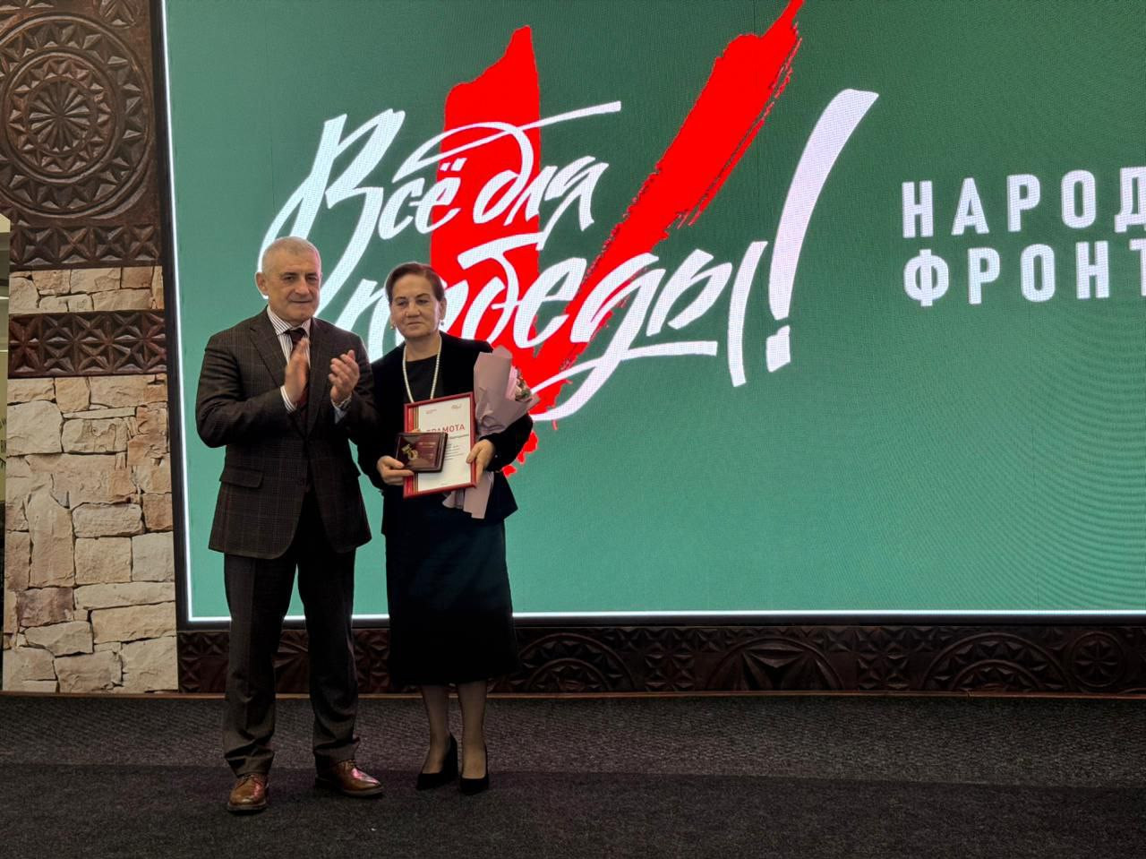 Среди награждённых была и Салихат Алиханова, директор Избербашского реабилитационного центра Минтруда Дагестан. Награду ей вручил вице-премьер правительства РД Ризван Газимагомедов.