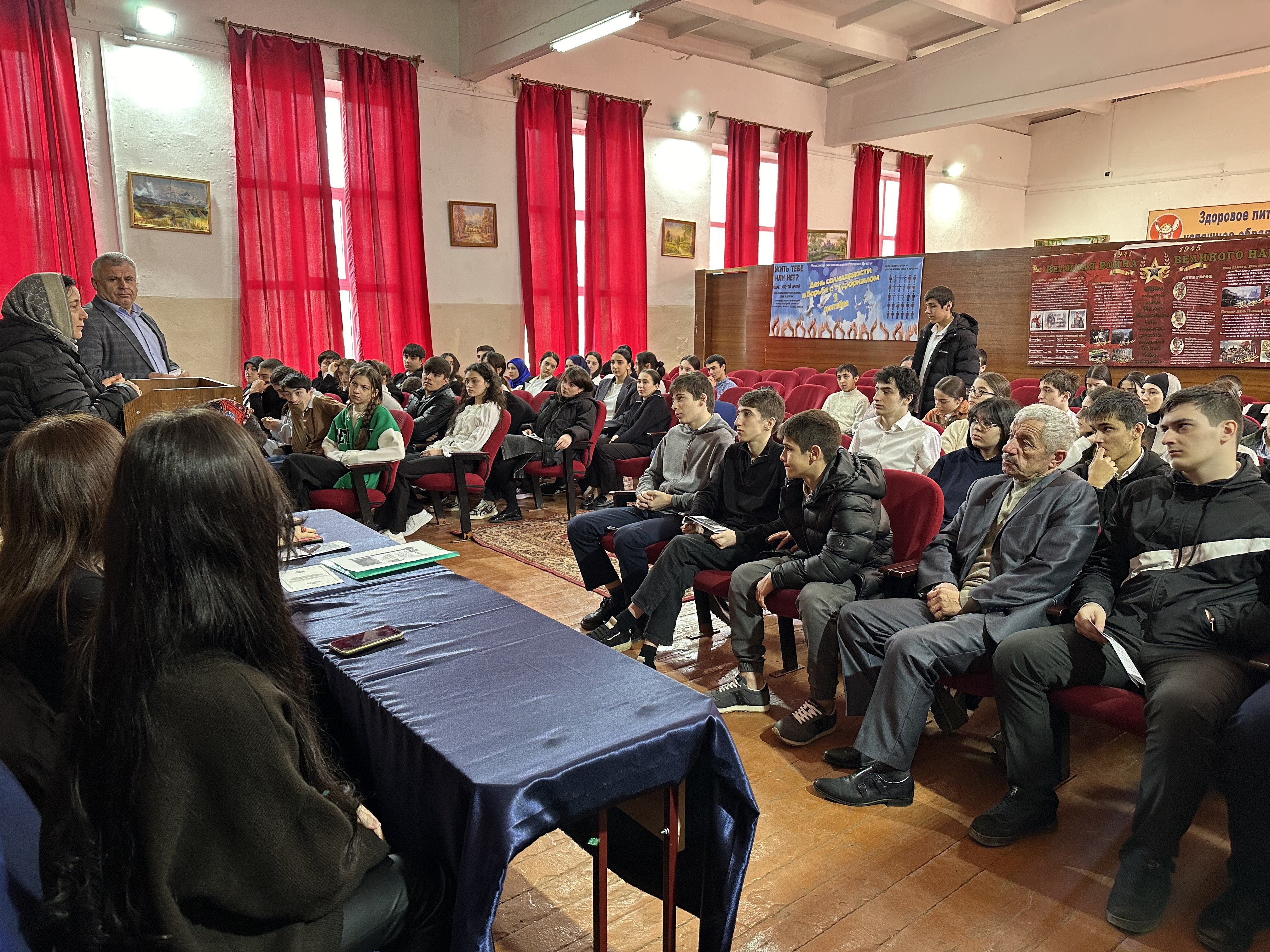 В мероприятии приняли участие ИО директора центра занятости- Мусаева С.М.,старший помощник начальника отделения по профпсихотбору Военного комиссариата г.Избербаш, Каякентского и Карабудахкентского района- Гаджиева Г.Б., директора школ, учитель ОБЖ, социальный педагог.