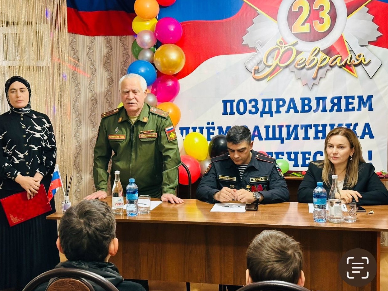 На мероприятие были приглашены Муцалов Айгази, ветеран военной службы, подполковник запаса и участник СВО Абасов Руслан, сержант десантно-штурмовой группы полка морской пехоты, а также несовершеннолетние подопечные и дети участников СВО. Гости рассказали много интересного об истории праздника, о своей службе, о героических подвигах наших солдат. Дети прочитали стихотворения о Родине и о Победе.