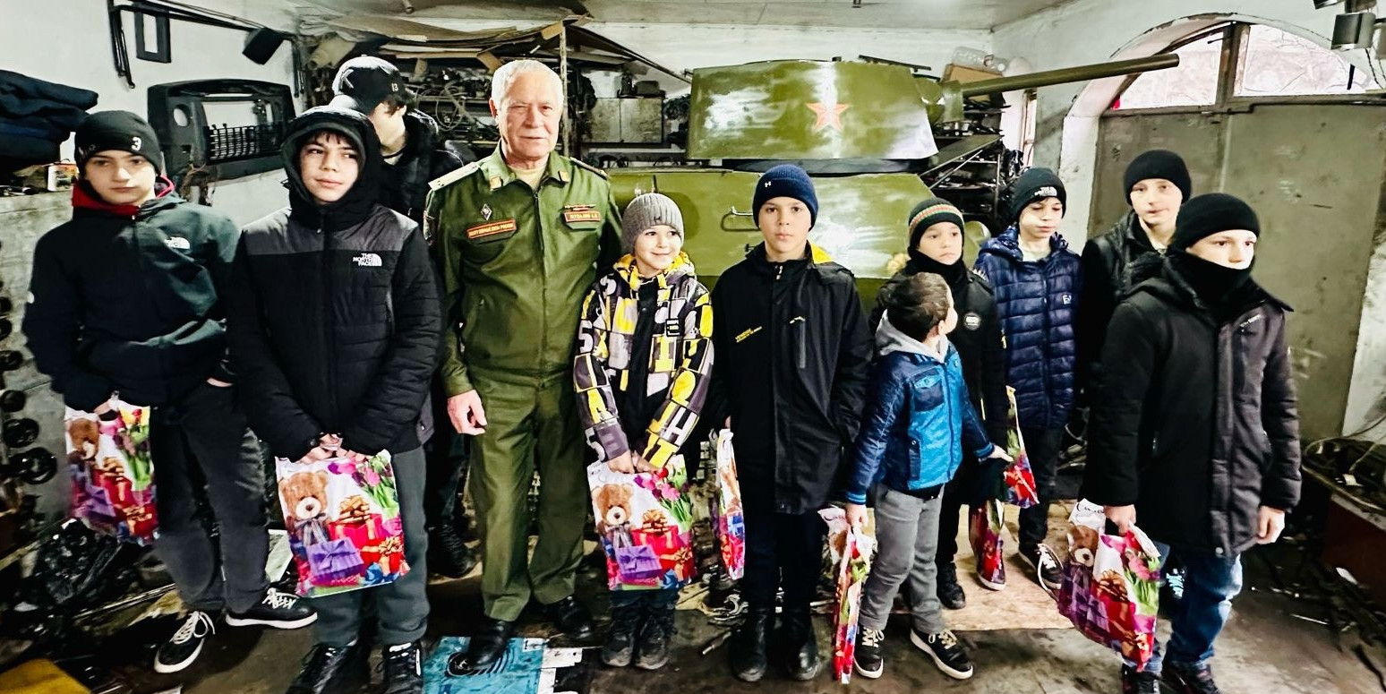 В конце мероприятия был подготовлен сюрприз - поездка к мастеру-умельцу Абдурахманову Махмуду, который показал детям - как смастерил макет корабля, на котором служил в юности, а также танк, который использовался в параде 9 мая в нашем городе. А затем всем детям и гостям были вручены памятные подарки.