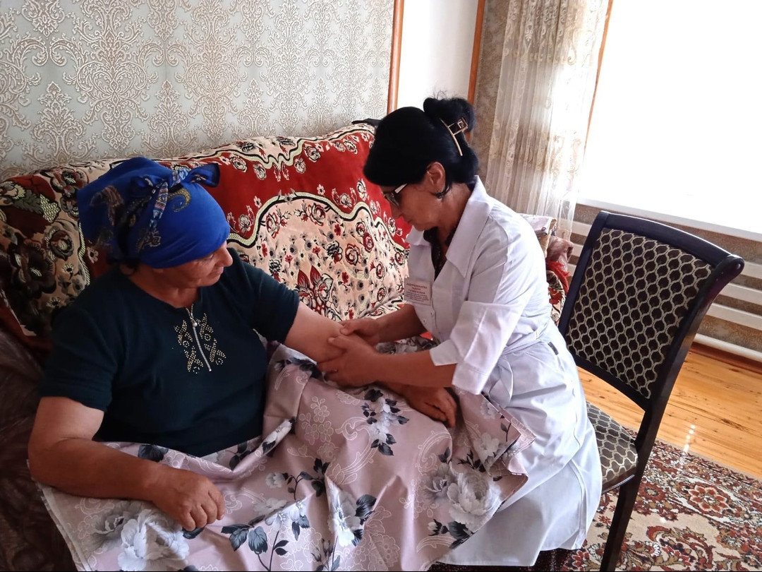В рамках систематического наблюдения и выполнения процедур, направленных на сохранение здоровья получателей социальных услуг, медсестра отделения социального обслуживания на дому для детей и семей с детьми Равият Абдурахманова провела курс лечебно-оздоровительного массажа верхних конечностей для своей подопечной Селимат Абдурахмановой, проживающей в селе Орта-Стал.Массаж был назначен не только для улучшения физического состояния, но и для повышения качества жизни Селимат, которая, к сожалению, страдает от сахарного диабета.