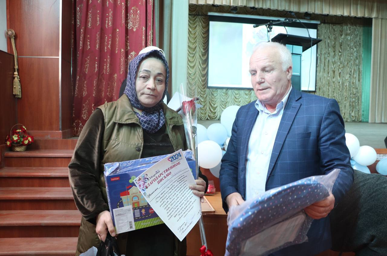 Матерям, воспитывающим детей-инвалидов от центра социального обслуживания населения были вручены продуктовые наборы, а также самим детям от Управления образования района вручили подарки.