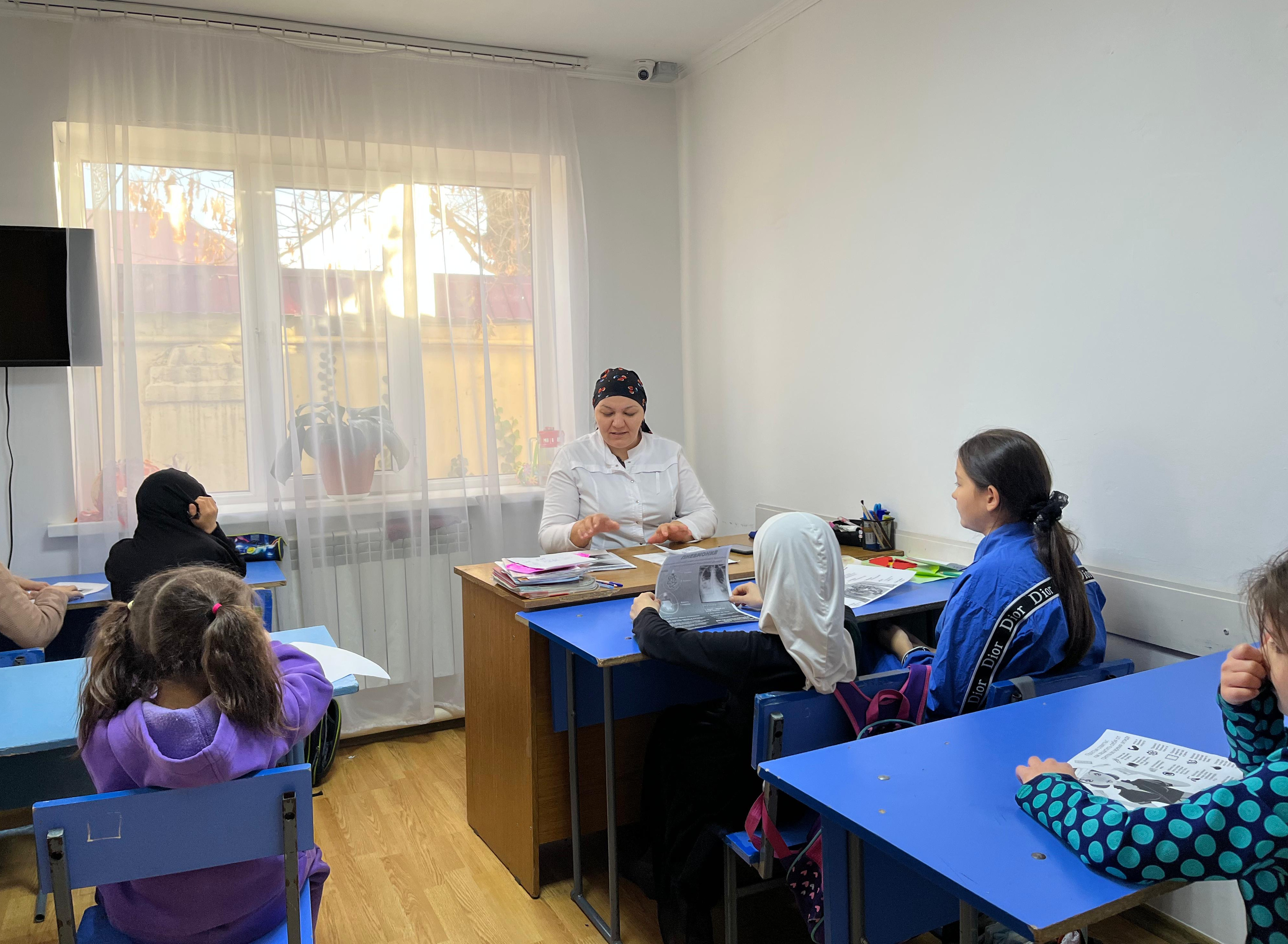 Медсестра Абдуллаева П.З. провела занятие с несовершеннолетними на тему: «Памятка по профилактике внебольничной пневмонии».