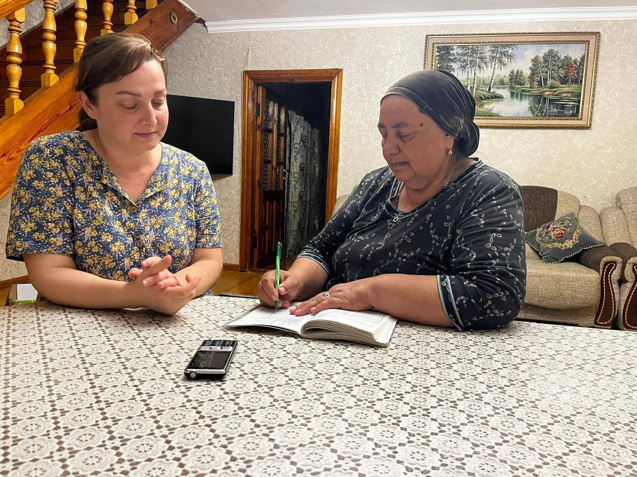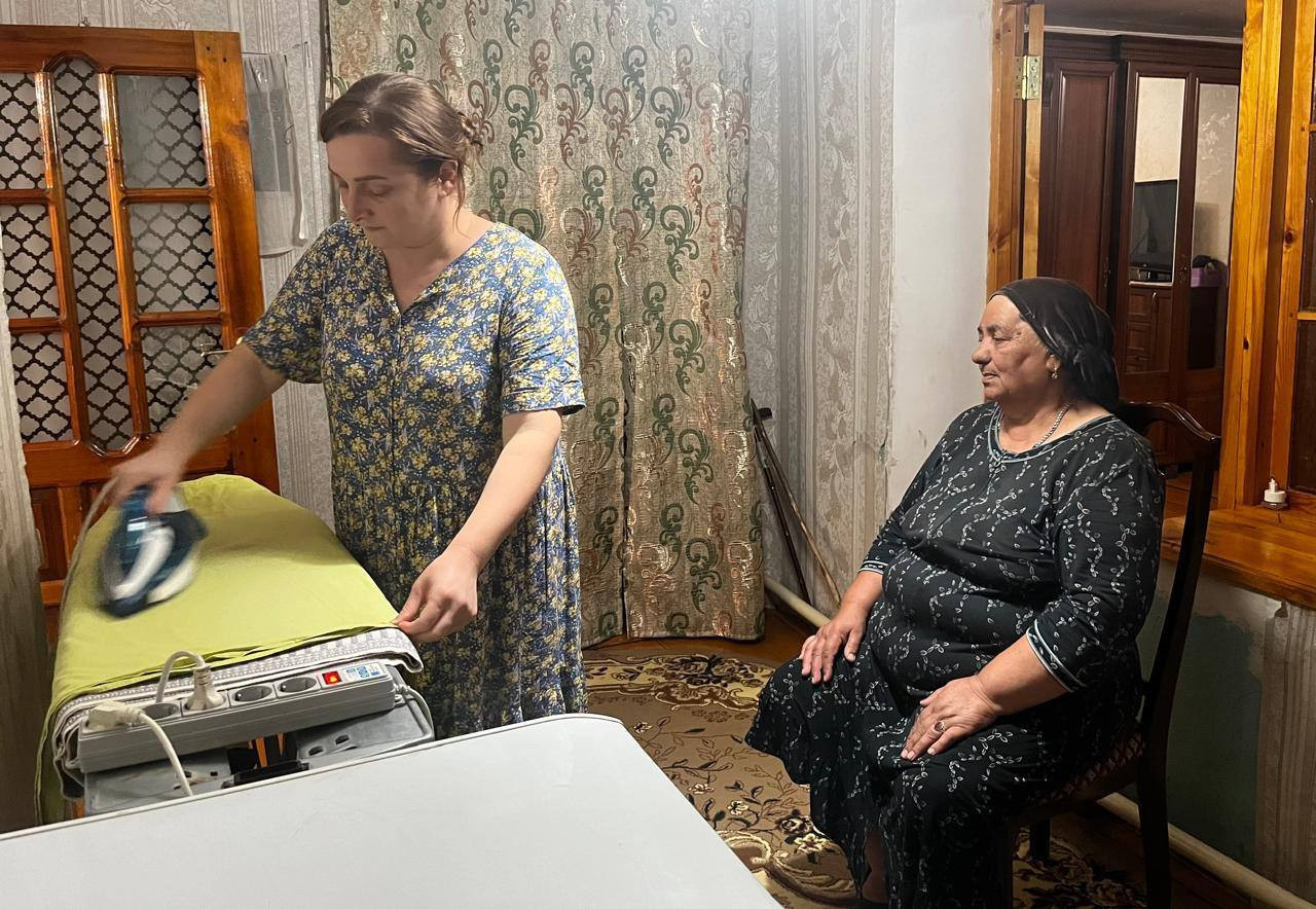 Социальные работники отделения социального обслуживания на дому пожилых граждан и инвалидов №1 Мальвина Алисенова оказывает социально-бытовые и социально-медицинские услуги своей подопечной.