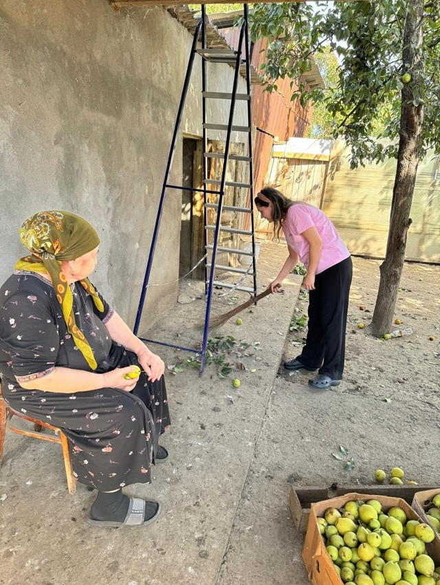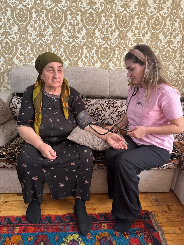 Социальный работник отделения социального обслуживания на дому граждан пожилого возраста и инвалидов №5 Умрият Алиева оказывает услуги своей подопечной.