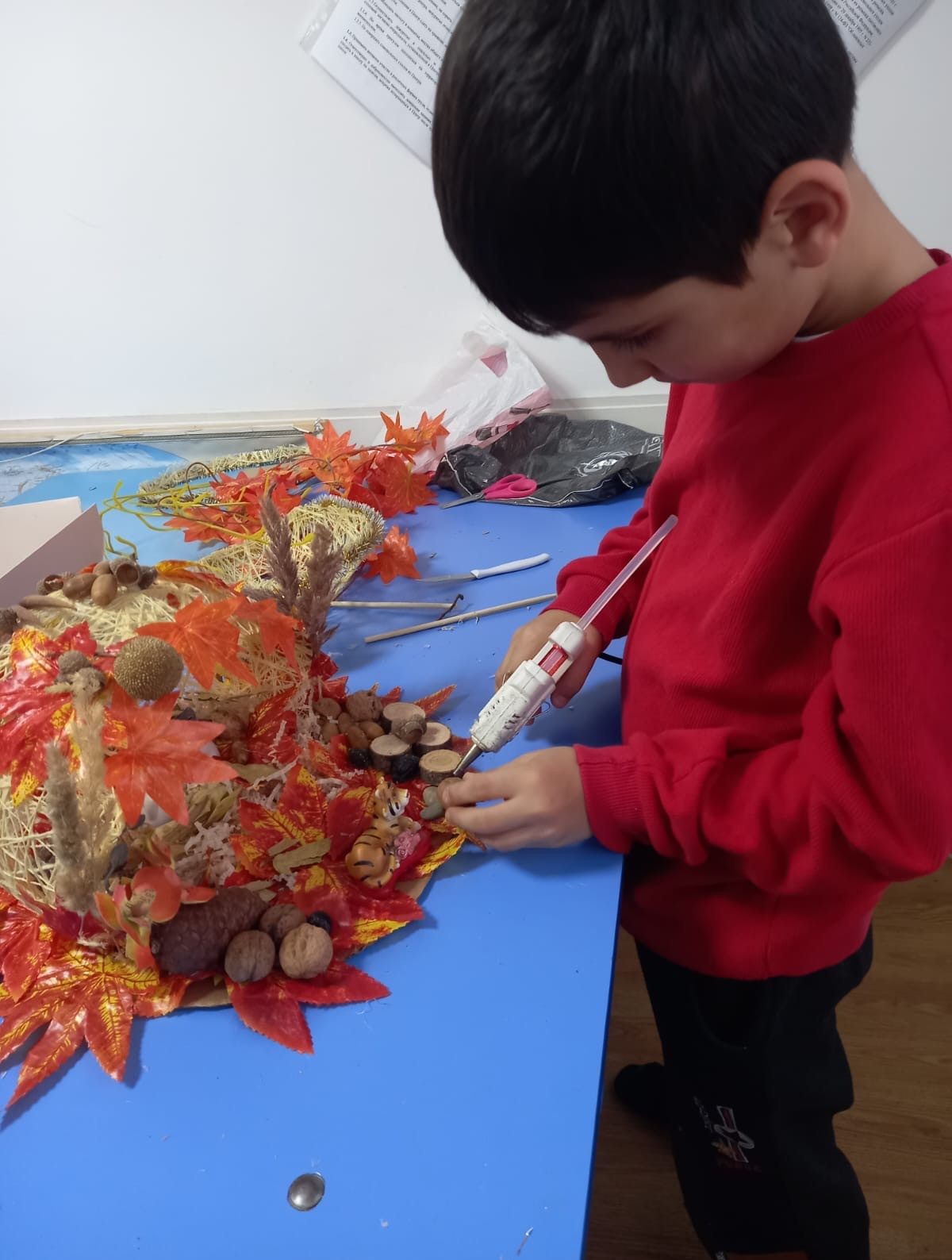 Воспитатель Равзанат Алиева провела занятие с детьми на тему:"Осень", на котором изготавливали поделку «Берлога»,используя подручный природный материал.