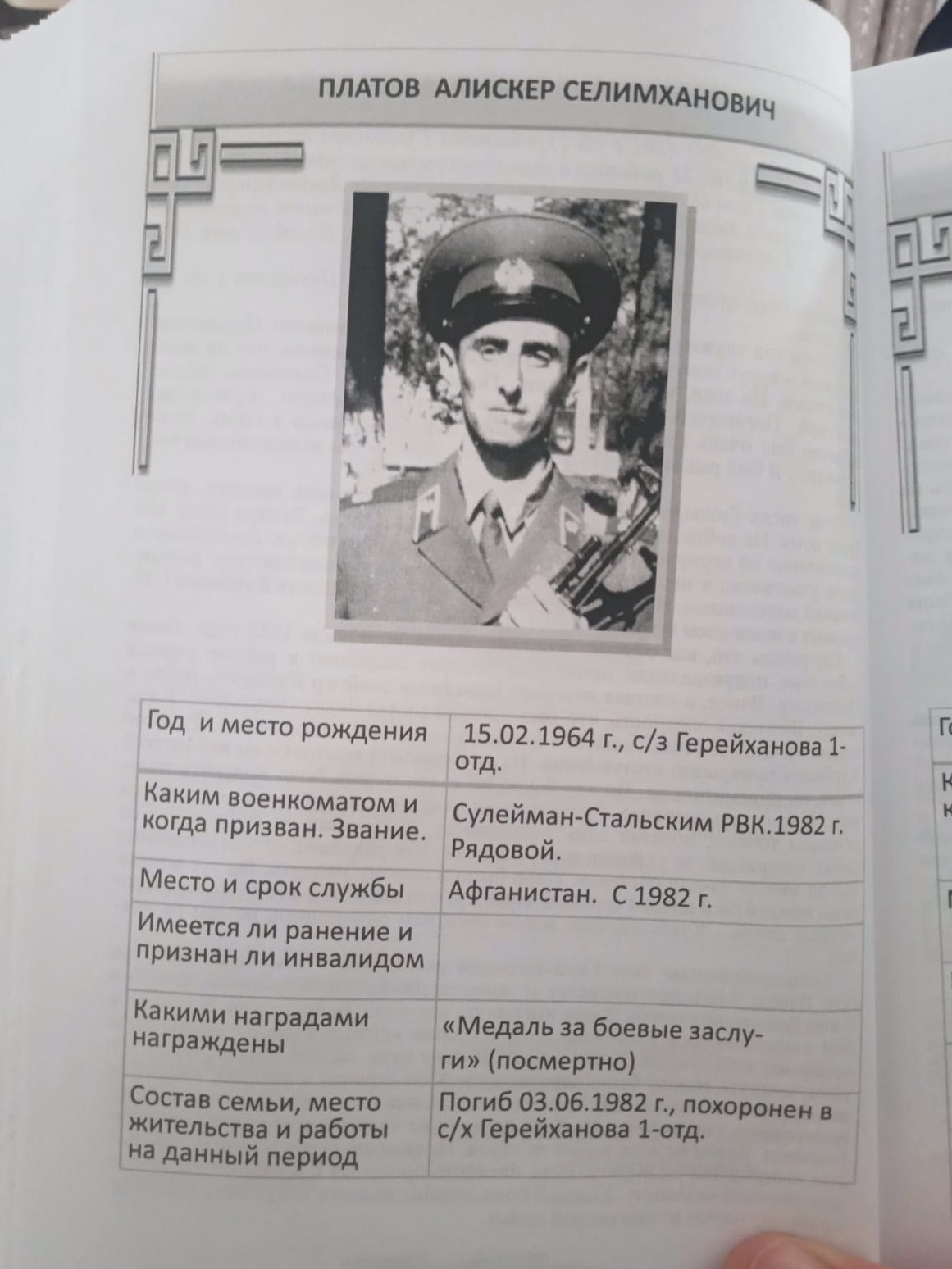 Директор Комплексного центра социального обслуживания населения в Сулейман-Стальском районе Абдулфетах Бабаев, председатель Совета ветеранов Ислеман Ризаев и глава сельского поселения 1-го отделения села Герейхановское Руслан Альдеров побывали у матерей погибших в Афганистане воинов-интернационалистов Алискера Платова, Гюльмагомеда Курбанова и Элиля Хучуева. Возглавил делегацию первый заместитель Главы администрации муниципального образования «Сулейман-Стальский район» Лацис Оруджев.