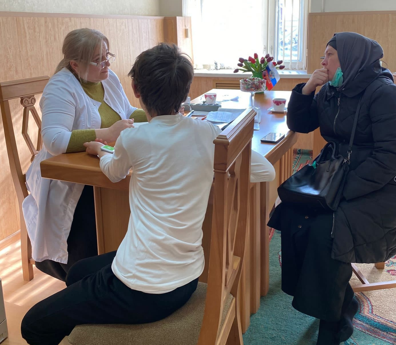 В ГБУ РД КЦСОН в МО «город Хасавюрт» была проведена важная и полезная акция для подопечных отделения социального обслуживания на дому детей и семей с детьми. По инициативе заведующей отделением Дибиргаджиевой Лейлы был организован бесплатный приём врача высшей категории из клиники «Органикс» в г. Грозном Висайтаевой Зулай Халадовны. В течении дня она провела осмотр детей и консультировала родителей несовершеннолетних подопечных Центра. Подопечные отделения получили уникальную возможность провести диагностику на месте и совершенно бесплатно.