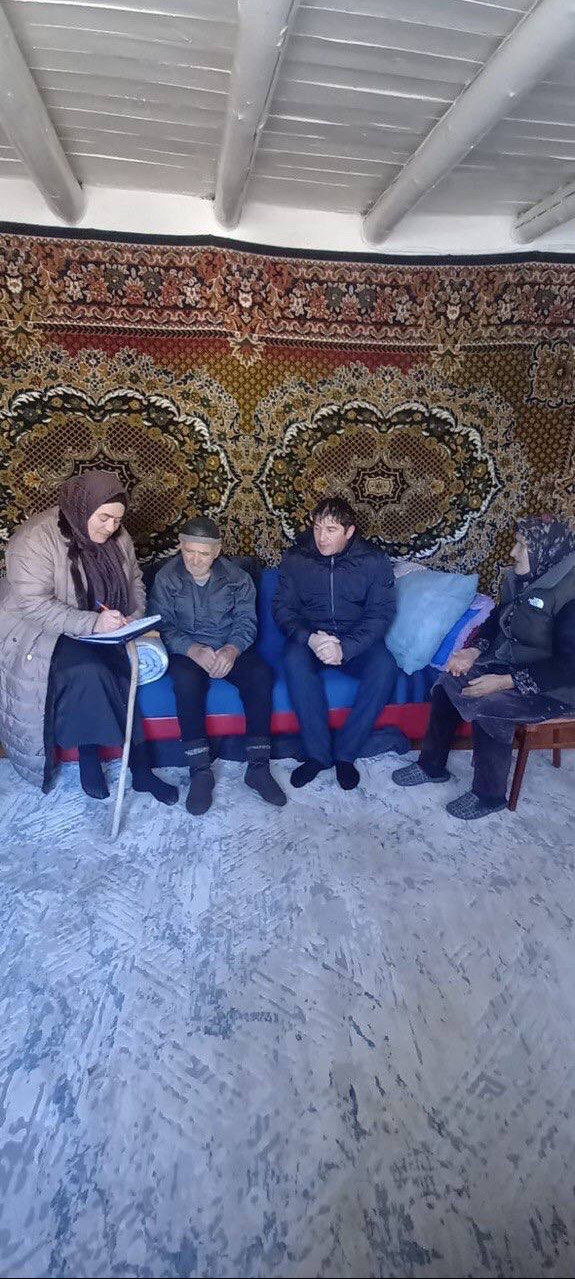 27 февраля комиссией , в составе исполняющего обязанности директора ГБУ РД КЦСОН в МО «Агульский район» Гаджи Шабанова и заведующих отделениями социального обслуживания граждан пожилого возраста и инвалидов на дому Джабаровой Ф. и Наврузовой Р., была проведена очередная выездная проверка в с.Буркихан с целью контроля качества оказания социальных услуг.