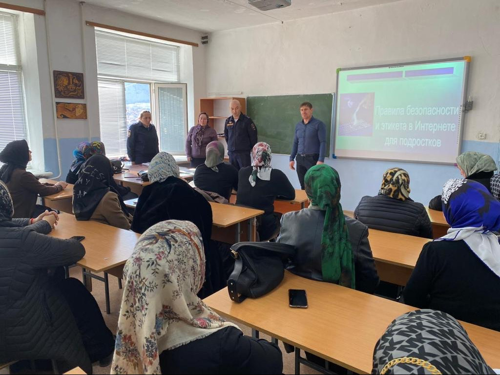 26 января в ГСОШ No1 прошло родительское собрание 5-9 классов на тему: «Правила безопасности и этикета в интернете для подростков». Где совместно с оперуполномоченным уголовного розыска старшим лейтенантом Алимирзаевым А.М. и старшим инспектором ПДН майором полиции Магомедовой М. Ш., психолог отделения социального обслуживания детей и семей с детьми ГБУ РД «КЦСОН в МО «Гергебильский район» Сулейманова А.была проведена профилактическая беседа с родителями. Цель мероприятия: Показать родителям важность и значимость проблемы формирования сетевого этикета у подростка. Ознакомить родителей с источниками информации по проблеме безопасности ребенка в Интернете. Также была затронута тема «Суицид в подростковой среде. Меры профилактики и предупреждения подросткового суицида" Попросили родителей быть внимательнее к детям, чтобы родители при выявлении изменений в характере ребенка обратились к психологу. Своевременная психологическая помощь, участливое отношение к подросткам, помогут избежать трагедий.