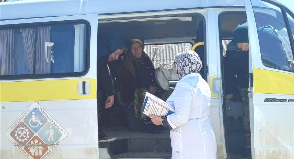 Специалисты Центра накануне доставили в районную поликлинику для прохождения медицинского осмотра 7 граждан старше 65 лет и инвалидов из села Харбук.