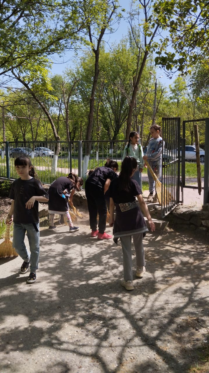 Школьники облагородили прилежащую к монументу территорию-подмели площадку около мемориала, очистили газоны от травы, помыли таблички с именами павших воинов.