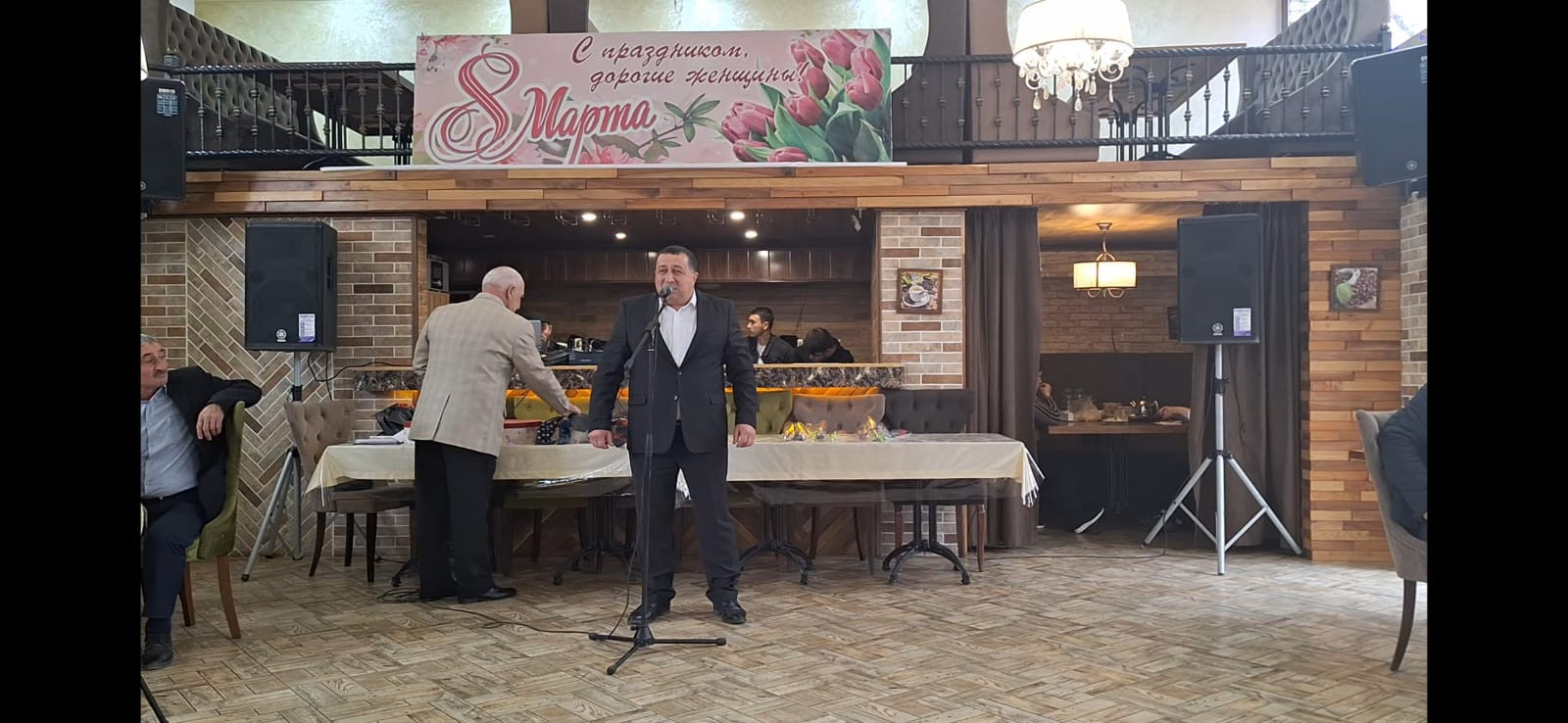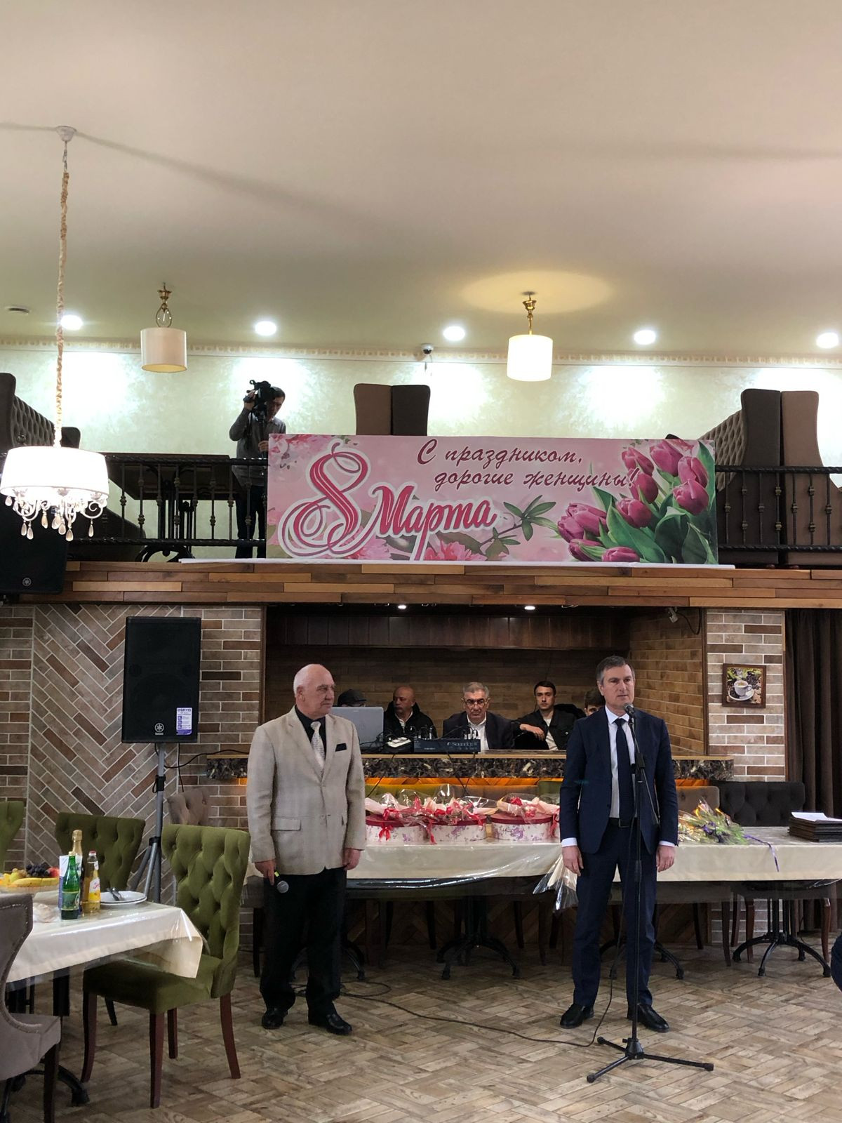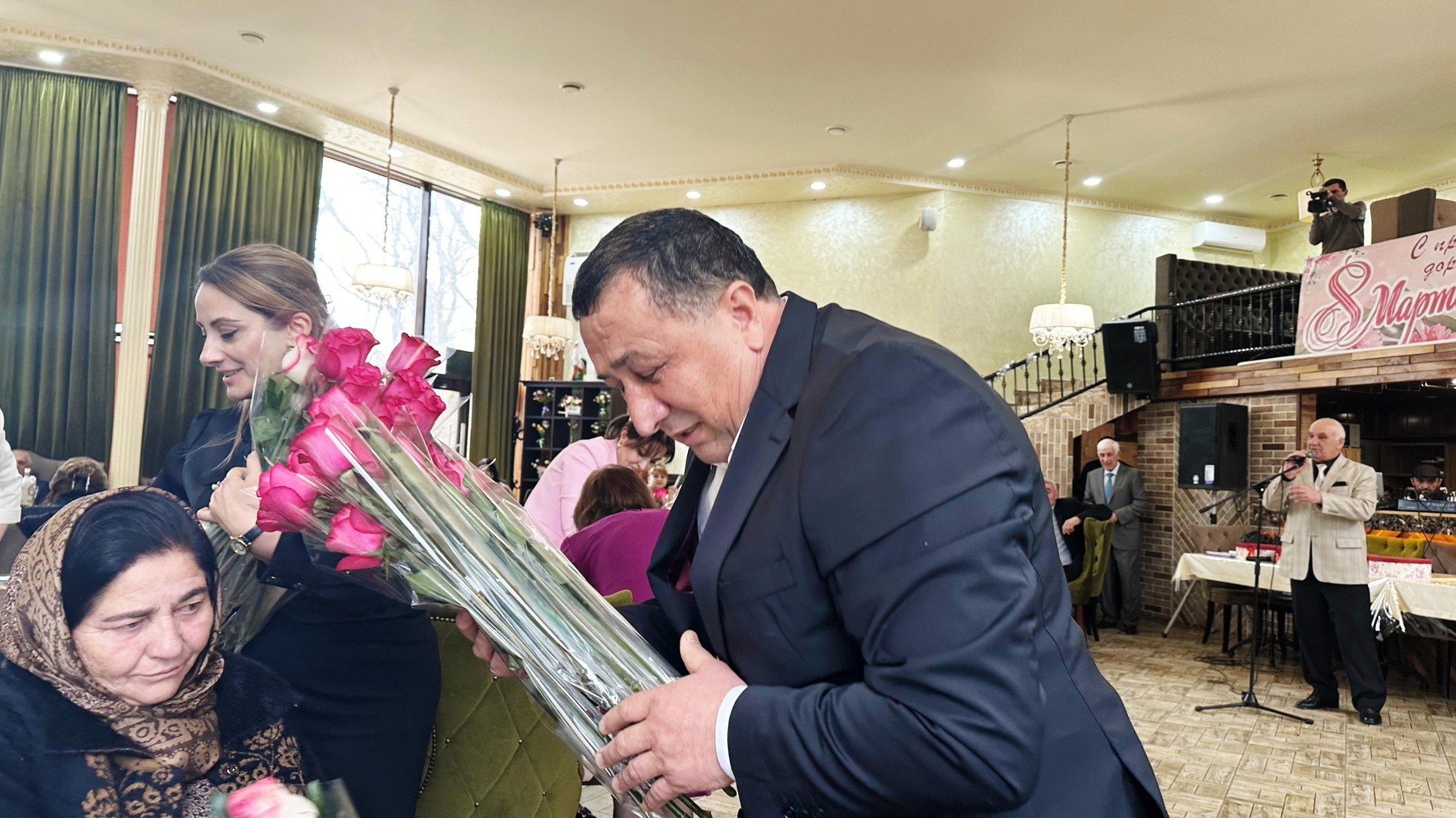Директор центра поздравил всех присутствующих женщин с праздником и подарил цветы собравшимся в зале представительницам прекрасного пола.