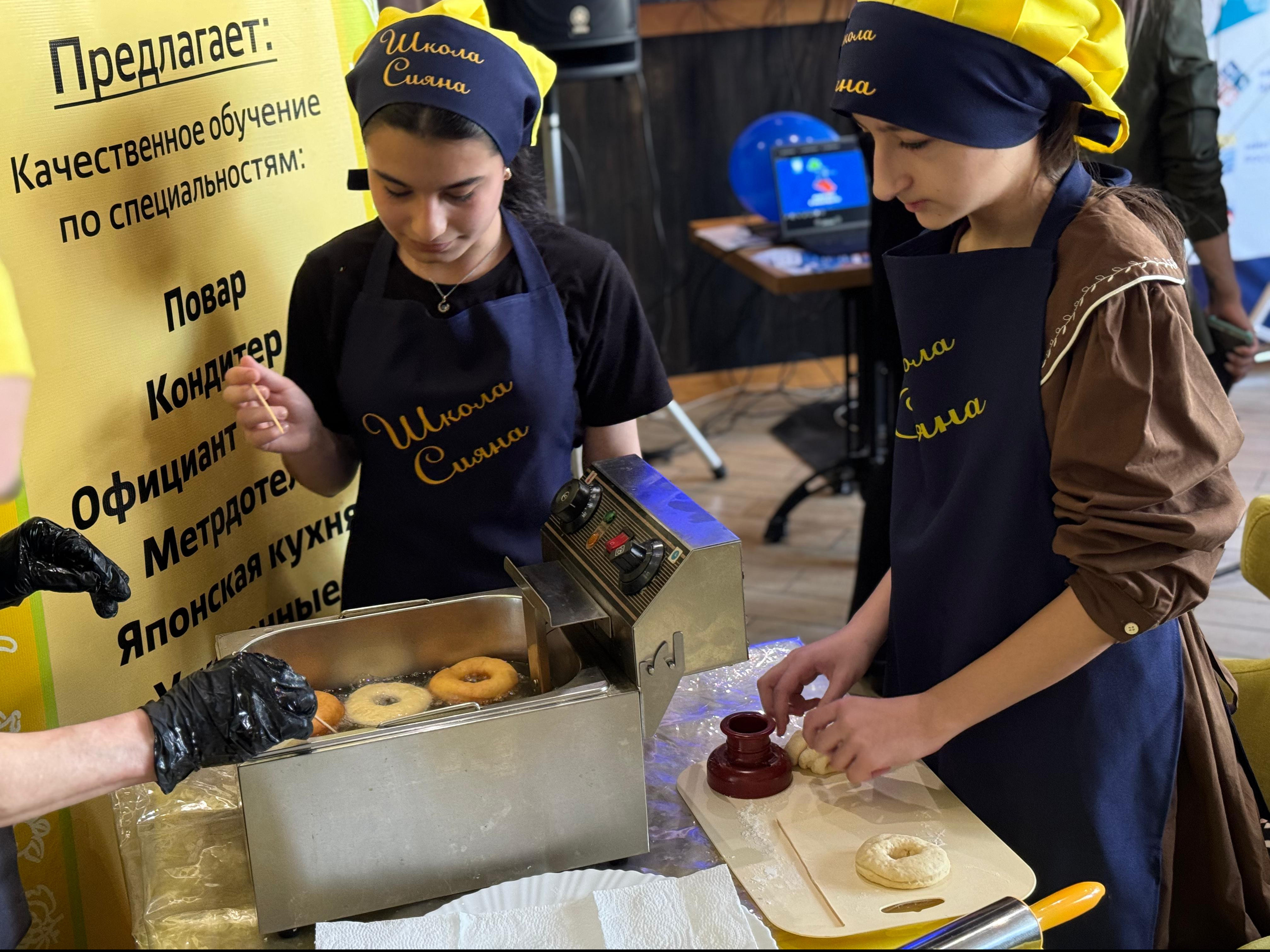 Свое кулинарное мастерство на ярмарке продемонстрировали Центр обучения кулинарному искусству «ВИП М.Ю» и Школа кулинарного мастерства «Сияна». Они показали мастер-класс по изготовлению пиццы, пончиков, пирожных. Посетители ярмарки не только продегустировали кулинарные блюда, но и сами смогли принять участие в их приготовлении.