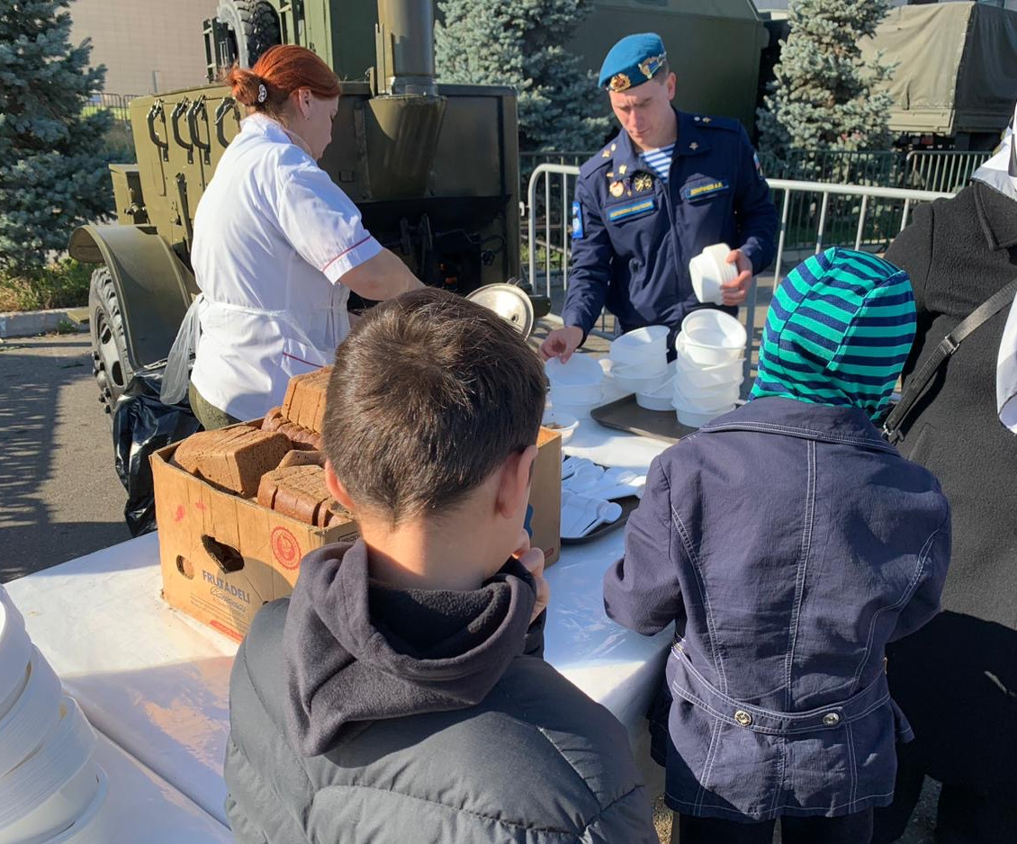 А в завершении экскурсии воспитанников угостили гречневой кашей полевой кухни.