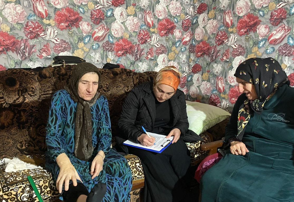 24 октября 2024 г. по графику выездов мобильной бригады выехали в с.Калининаул Казбековского района. Заведующая отделением социального обслуживания на дому Улубиева С. провела собрание для социальных работников. Обсудили проблемные вопросы участников СВО. После собрания, вместе со специалистами провели подворный обход получателей социальных услуг. Проверили графики посещения получателей социальных услуг, условия их проживания. Всего были охвачены 14 получателей социальных услуг. Также были оказаны срочные услуги 3 малообеспеченным семьям.
