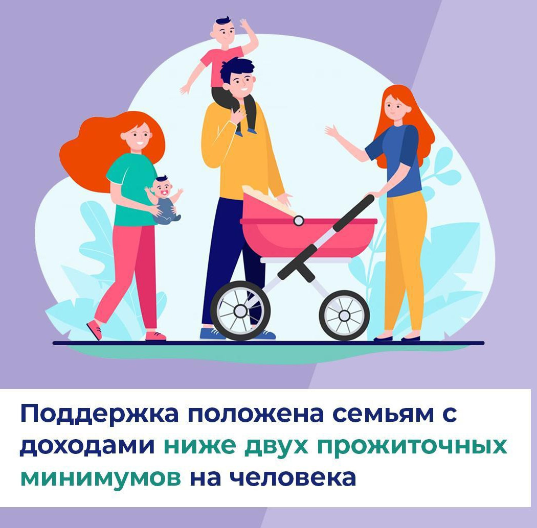 Выплата назначается без комплексной оценки нуждаемости — то есть не учитывается имущество семьи и не применяется «правило нулевого дохода».